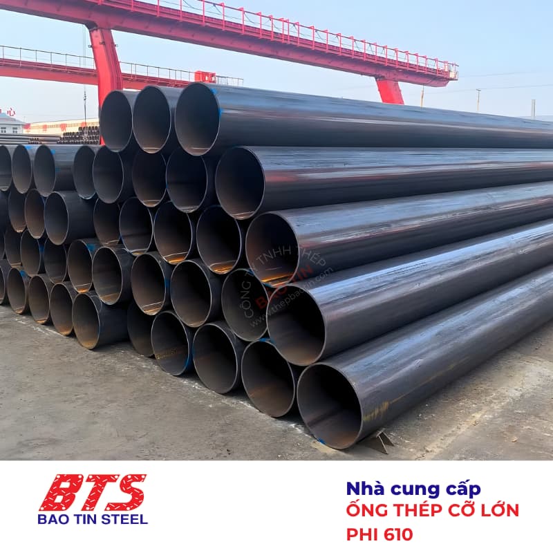 Ống thép hàn DN600 là loại ống thép có đường kính danh nghĩa 600mm, tương ứng với đường kính ngoài Ø609.6mm, được sản xuất bằng phương pháp hàn dọc (ERW hoặc LSAW) từ thép tấm cuộn. Đây là dòng ống đường kính lớn, chuyên dùng cho các hệ thống công nghiệp yêu cầu lưu lượng lớn và áp suất ổn định.