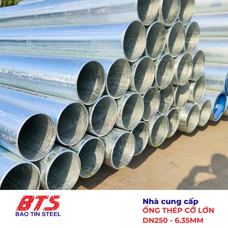 Kích thước ống thép mạ kẽm DN250 dày 6.35mm