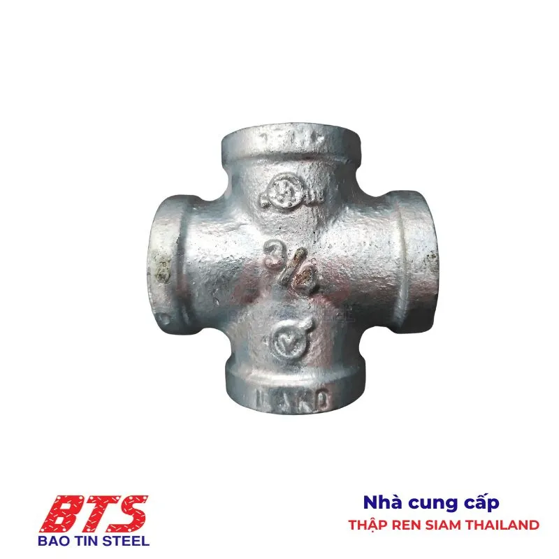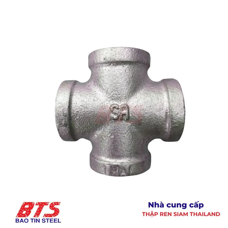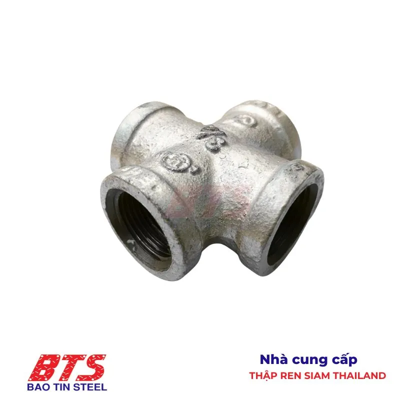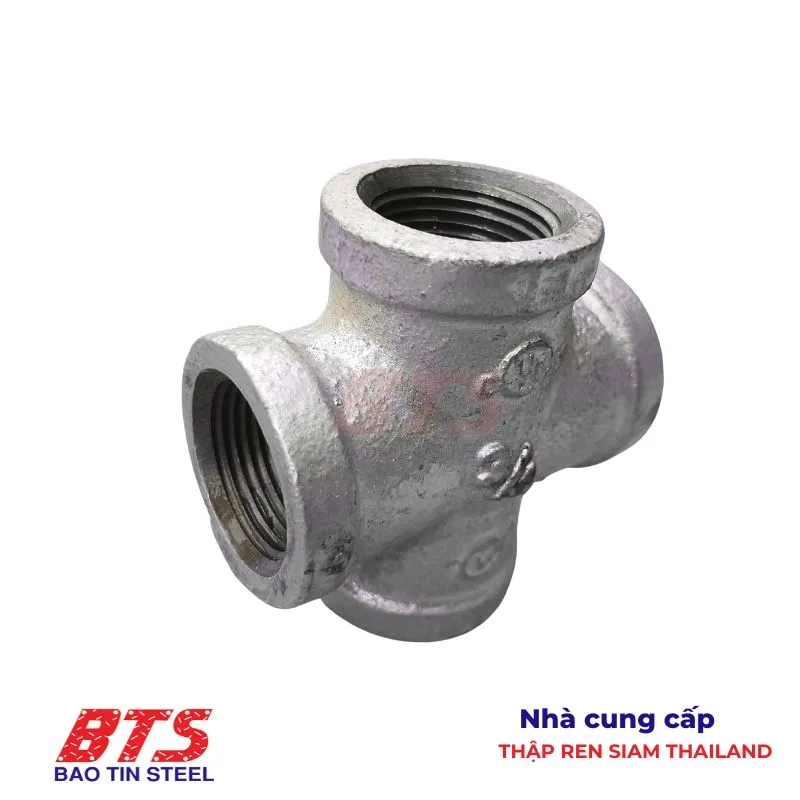 Thập ren Siam là phụ kiện nối ống mạ kẽm được sử dụng phổ biến trong các hệ thống đường ống cấp thoát nước, PCCC, công nghiệp và dân dụng. Với thiết kế hình chữ thập, sản phẩm cho phép kết nối 4 nhánh ống cùng lúc, giúp chia nhánh hoặc ghép nối đường ống một cách khoa học và chắc chắn.