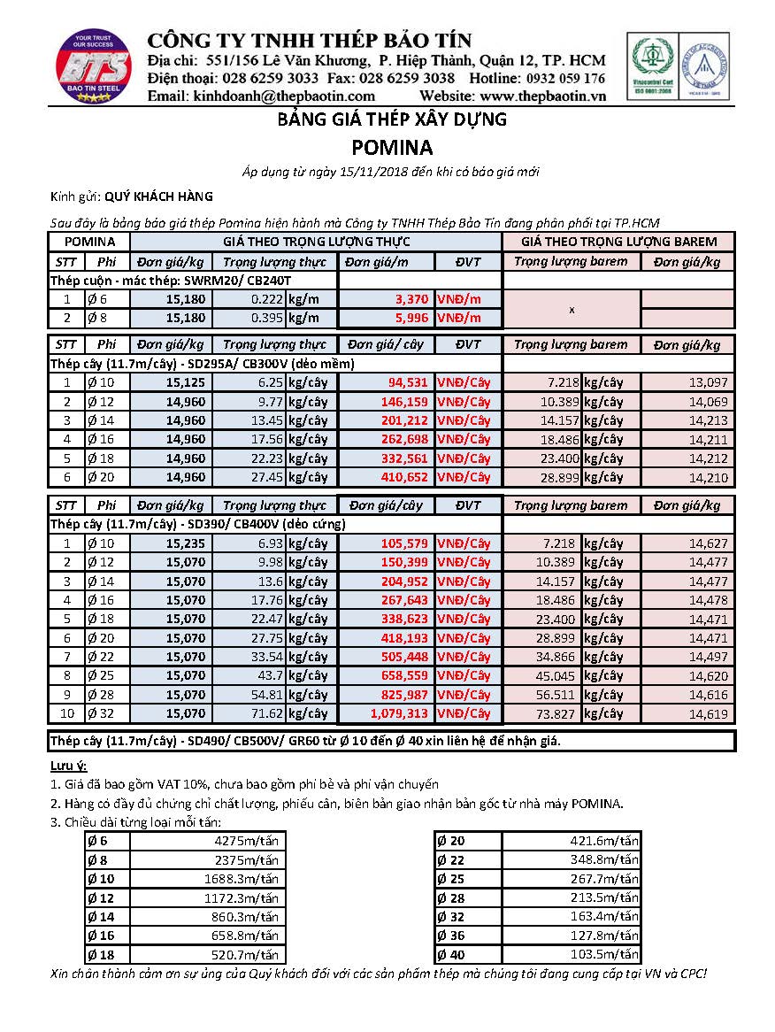 Lưu ý bảng giá chỉ mang tính chất tham khảo, vui lòng gọi hotline Thép Bảo Tín 0932 059 176 để được tư vấn và báo giá mới nhất tại thời điểm hiện tại.
