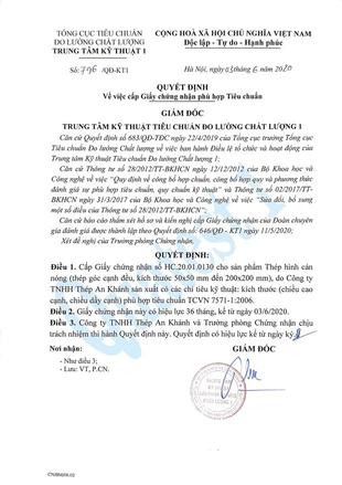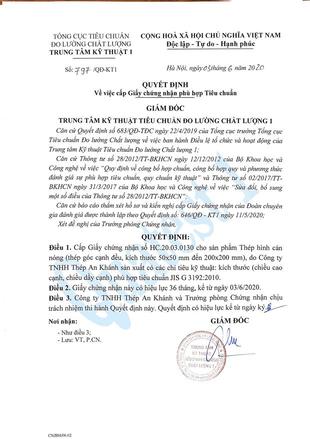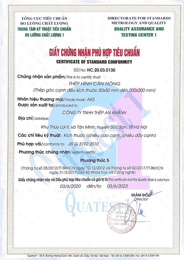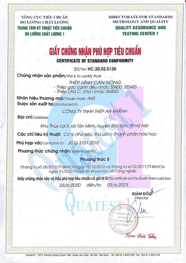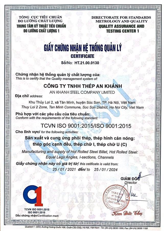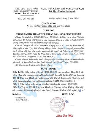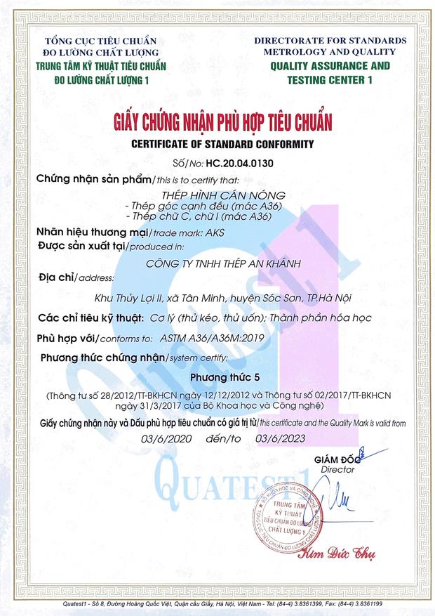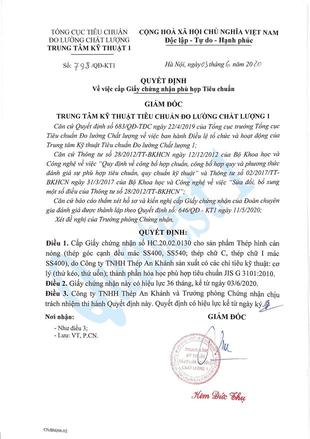 Một Số Chứng Chỉ Thép An Khánh đạt được