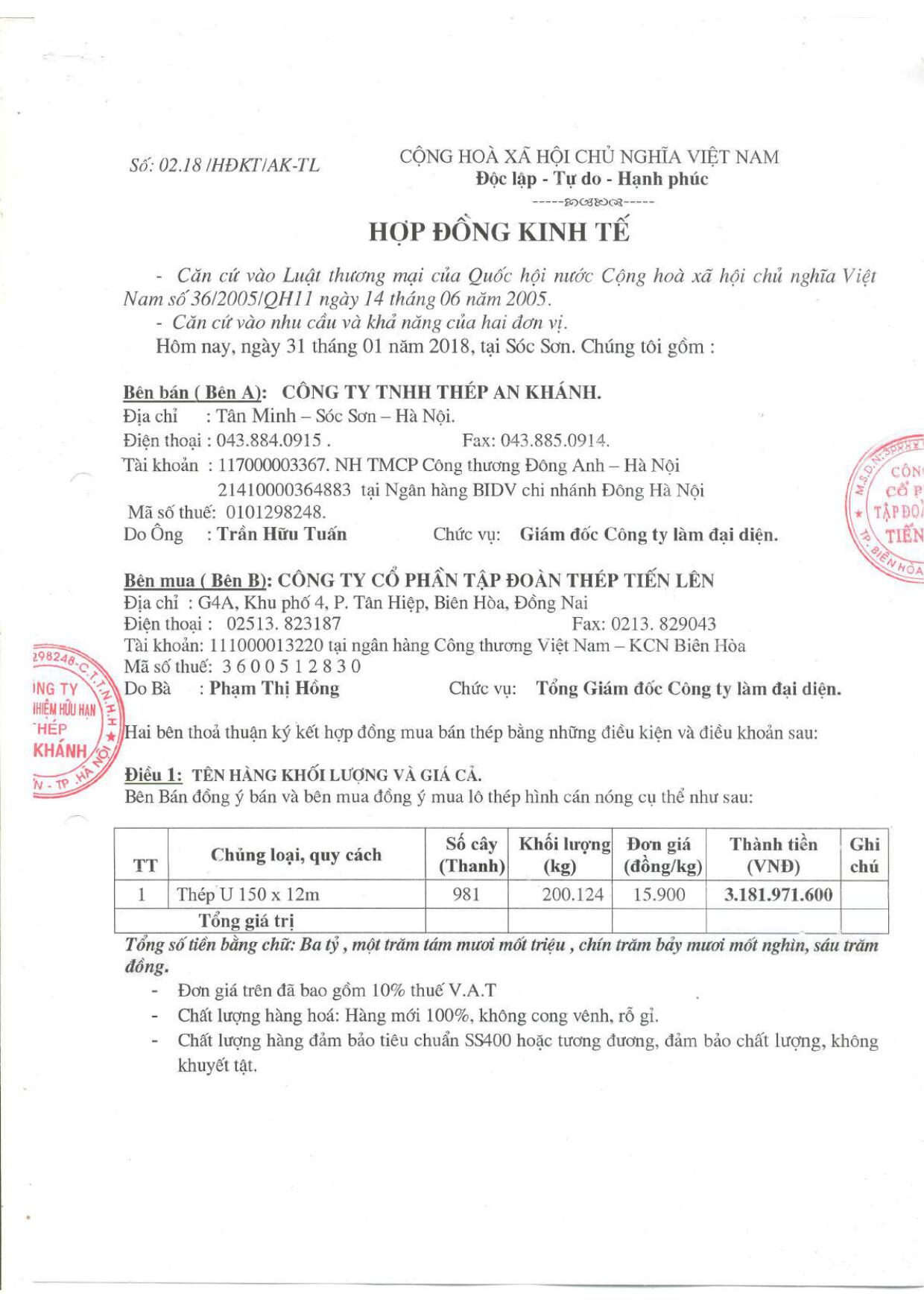 Ok heng! Ở dưới là 1 số hồ sơ và tài liệu mà Thép An Khánh cung cấp cho Thép Bảo Tín nhằm đáp ứng yêu cầu và tiêu chuẩn của Thép Bảo Tín trước khi quyết định hợp tác.