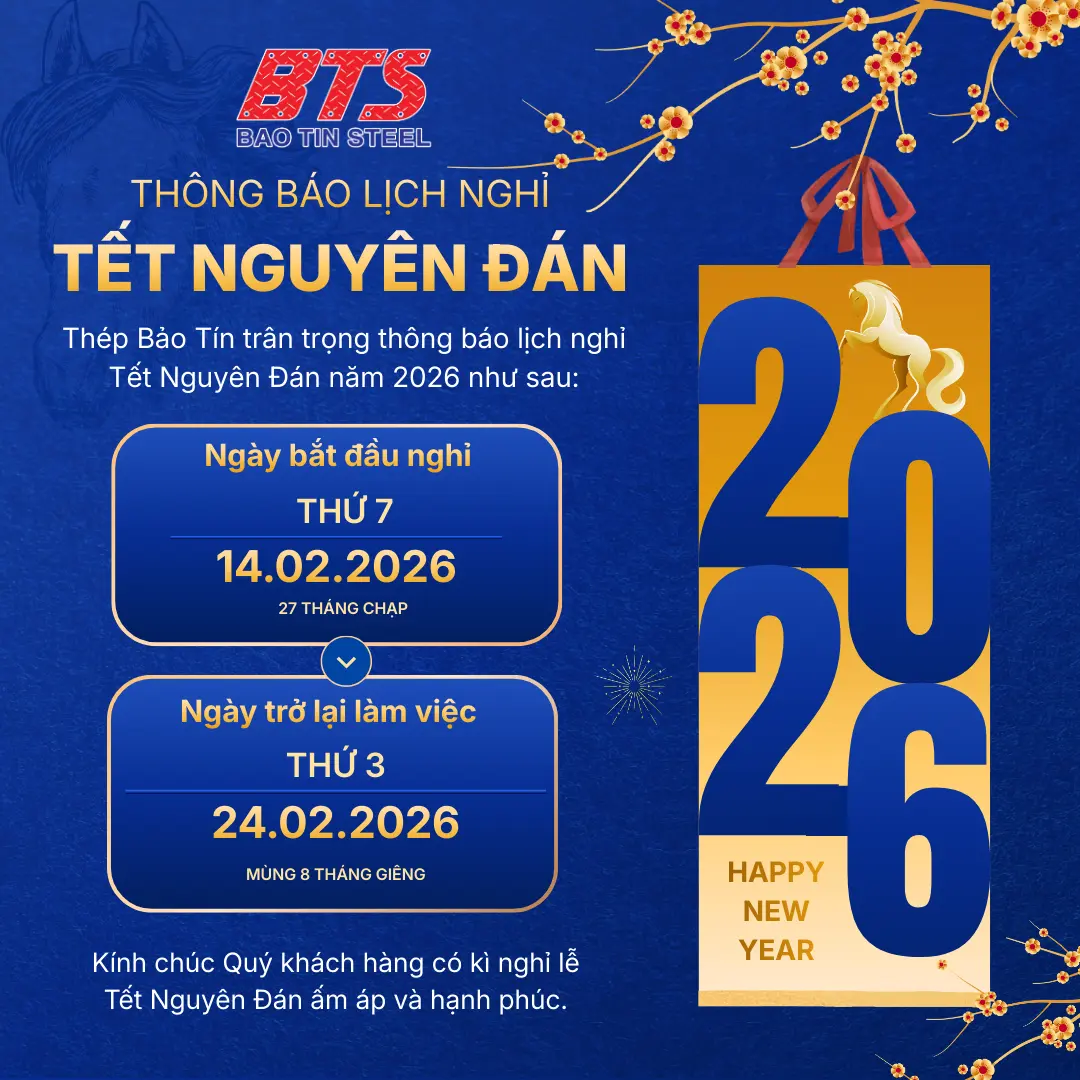 Trước thềm năm mới, Thép Bảo Tín xin kính chúc Quý khách hàng, Quý đối tác cùng gia đình một năm mới Sức Khỏe Dồi Dào – Kinh Doanh Phát Đạt – Vạn Sự Như Ý. Hy vọng năm 2026 sẽ tiếp tục mở ra những cơ hội hợp tác bùng nổ và thành công rực rỡ hơn nữa.