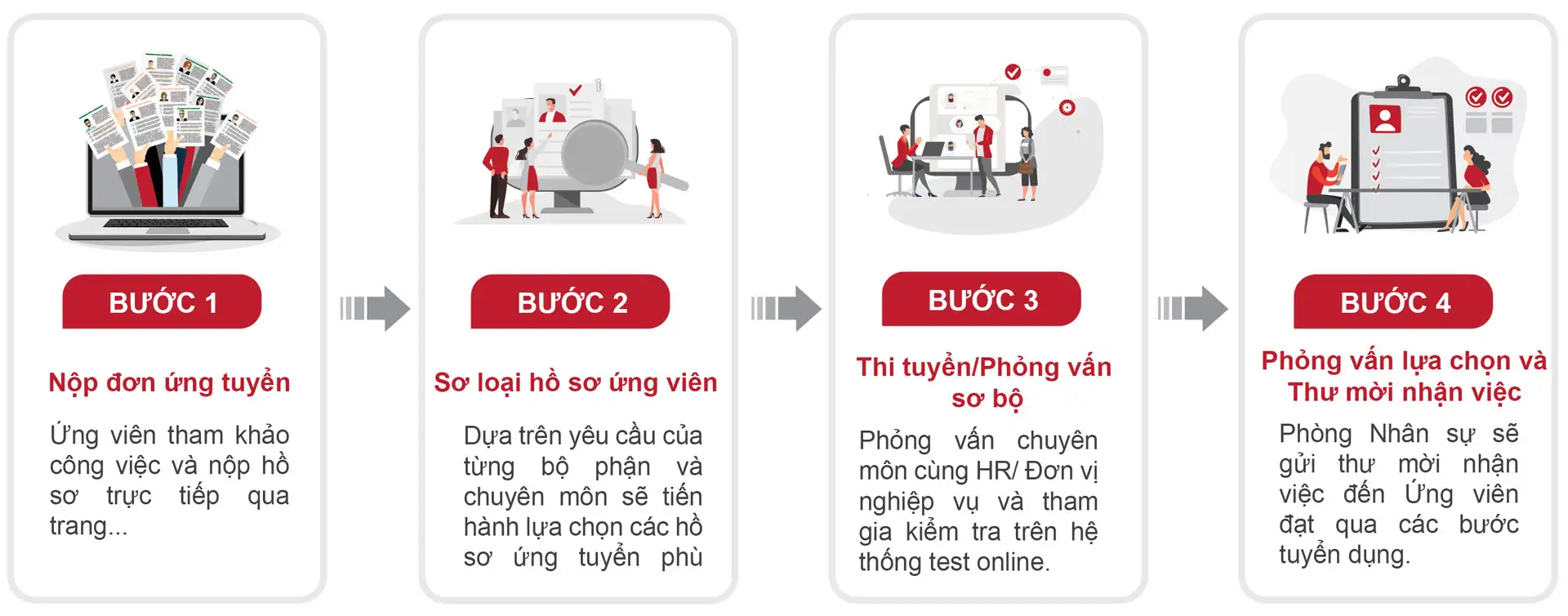 Ứng viên nhận kết quả ngay trong buổi phỏng vấn và nhận việc.